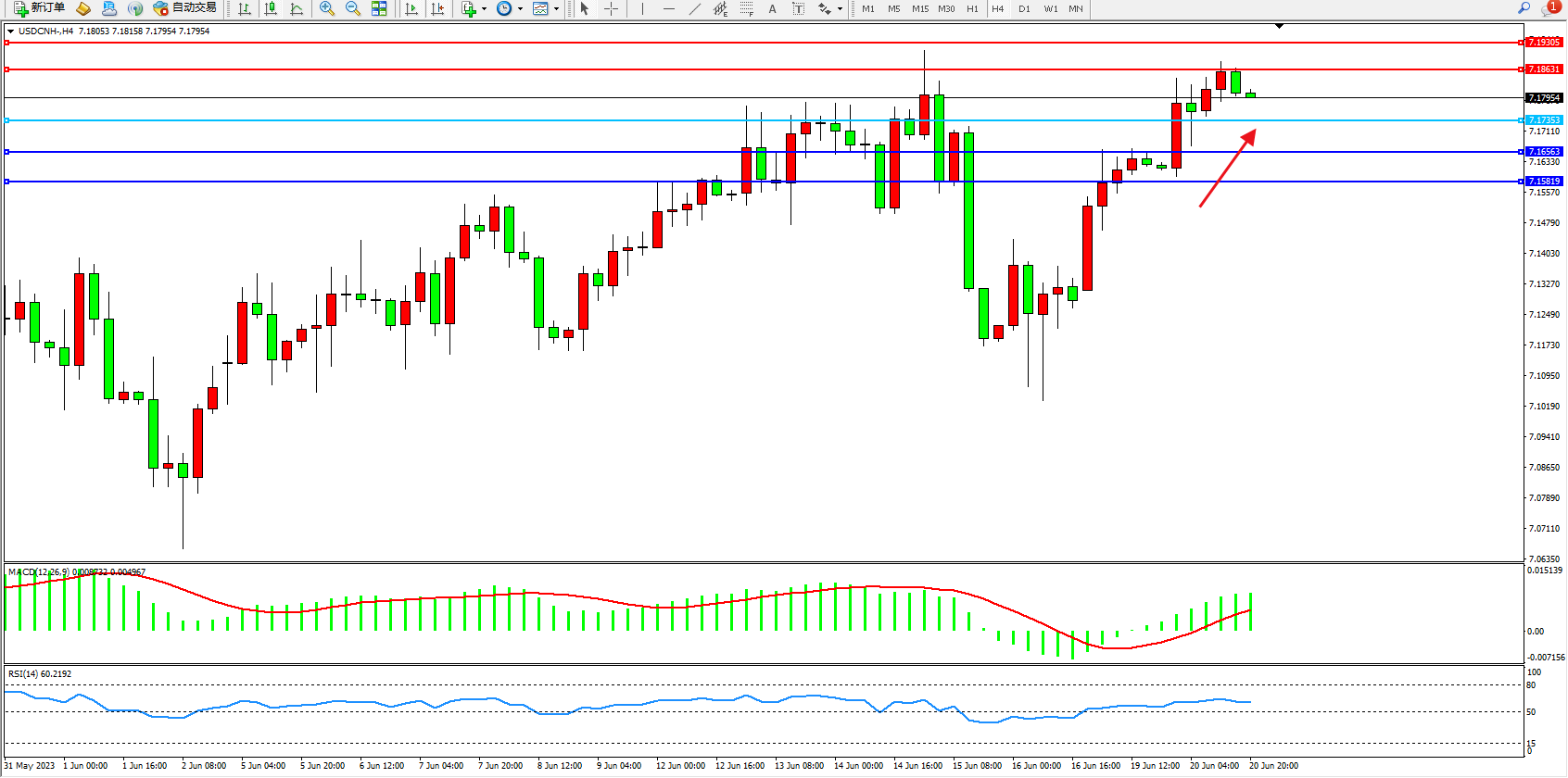 交易策略:7.17353上方看涨,目标7.18631 7.19305