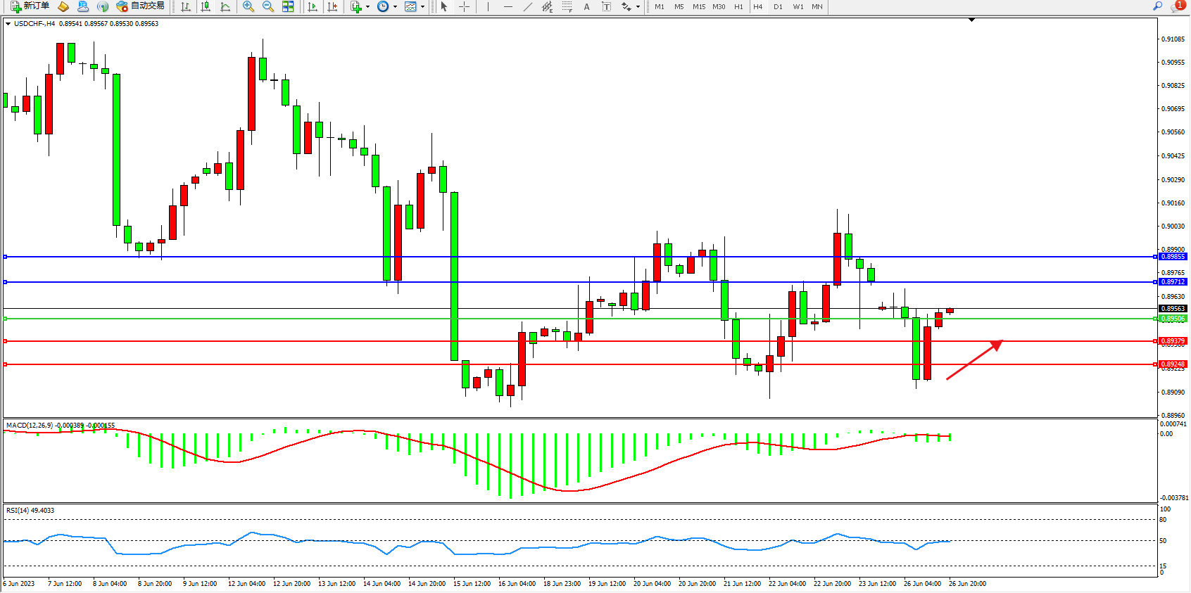 交易策略:0.89506上方看涨,目标0.89712 0.89855