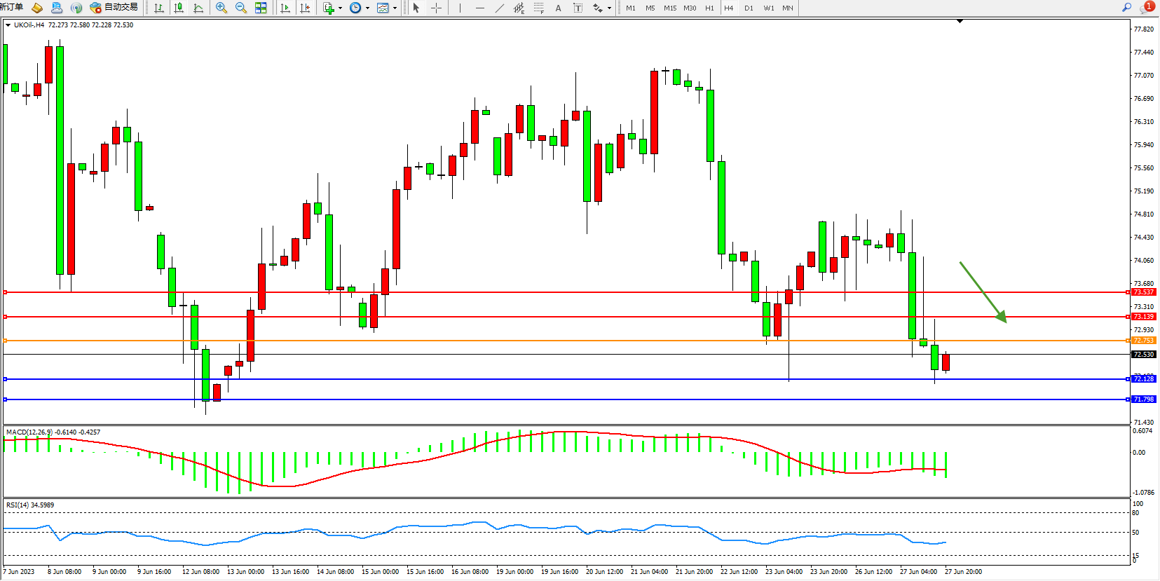 布油维持72.530附近震荡,沙特阿拉伯将于7月份单方面额外减产100万桶/日,加上季节性需求强劲,应有助于在第三季度实际收紧市场。