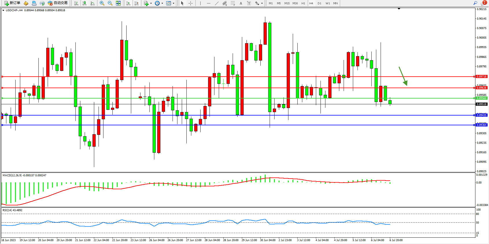 交易策略:0.89560下方看跌,目标0.89435  0.89364