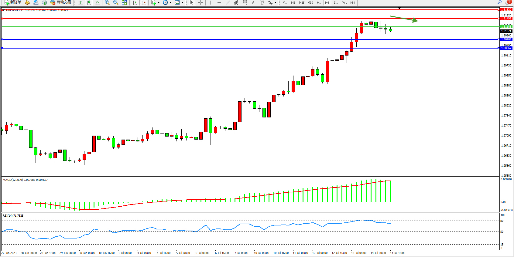 备选策略:1.31188上方看涨,目标1.31498  1.31820