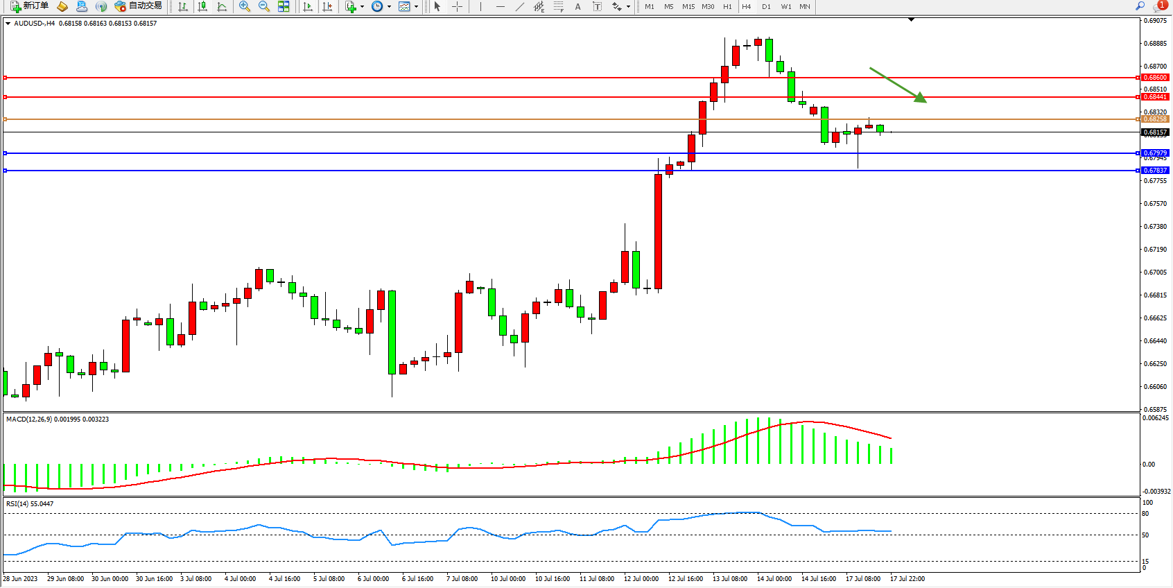 交易策略:0.68258下方看跌,目标0.67979 0.67837