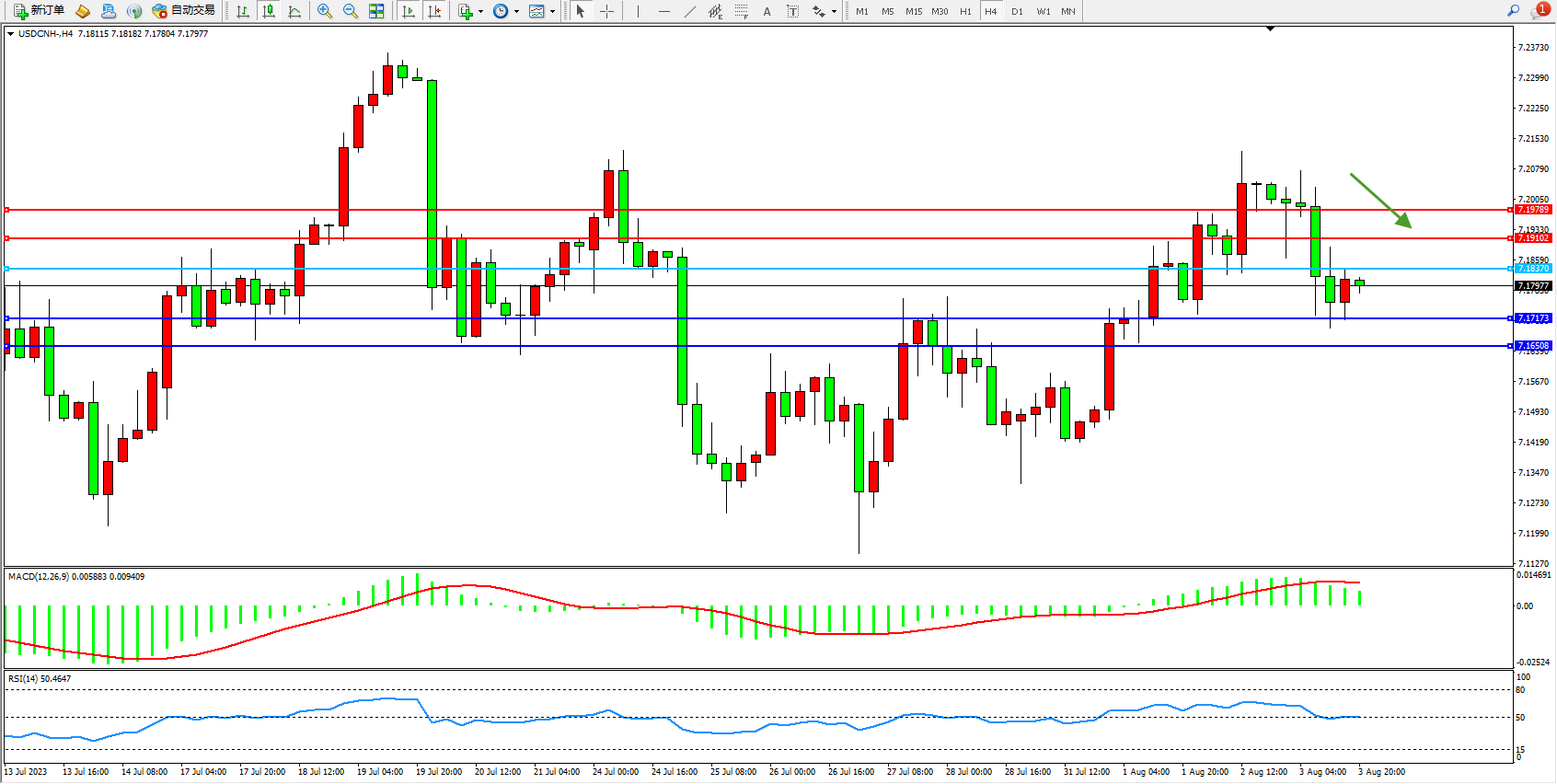 美元兑人民币维持7.17977附近震荡,7月服务业和制造业冷热不均是突出特征,宏观景气度低、经济下行压力大仍是不争事实。