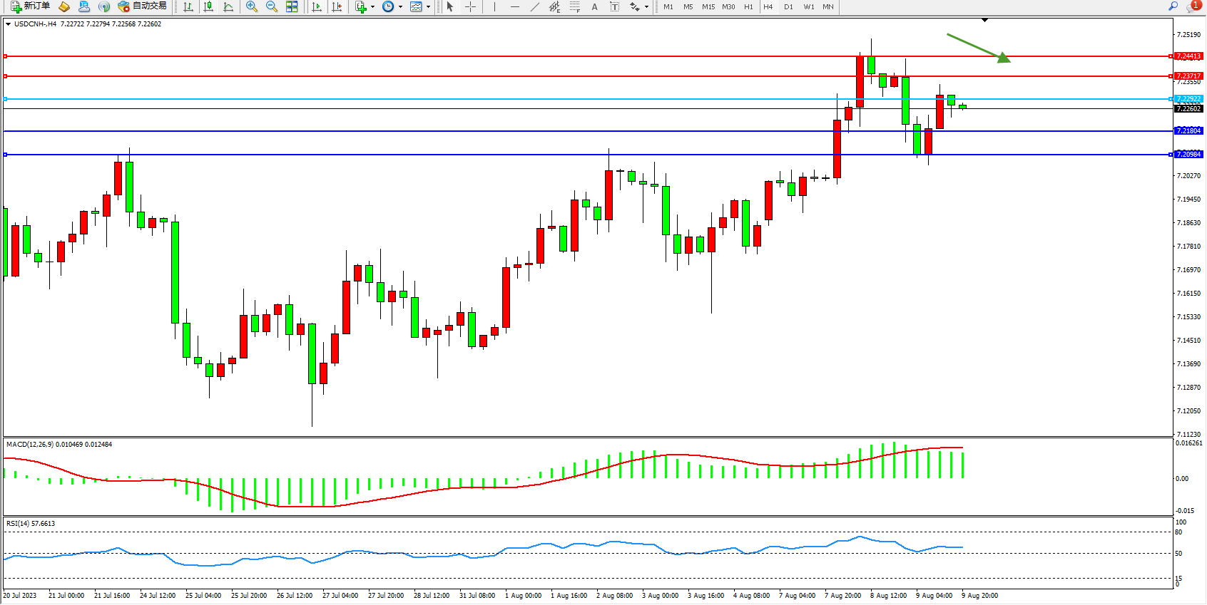 备选策略:7.22922上方看涨,目标7.23717 7.24413