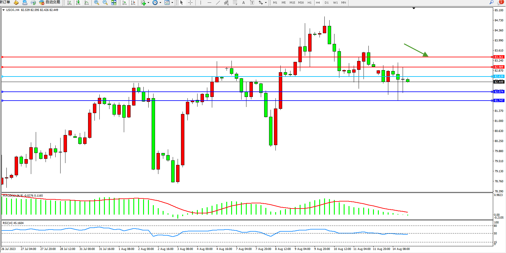 交易策略:82.639下方看跌,目标82.074 81.747