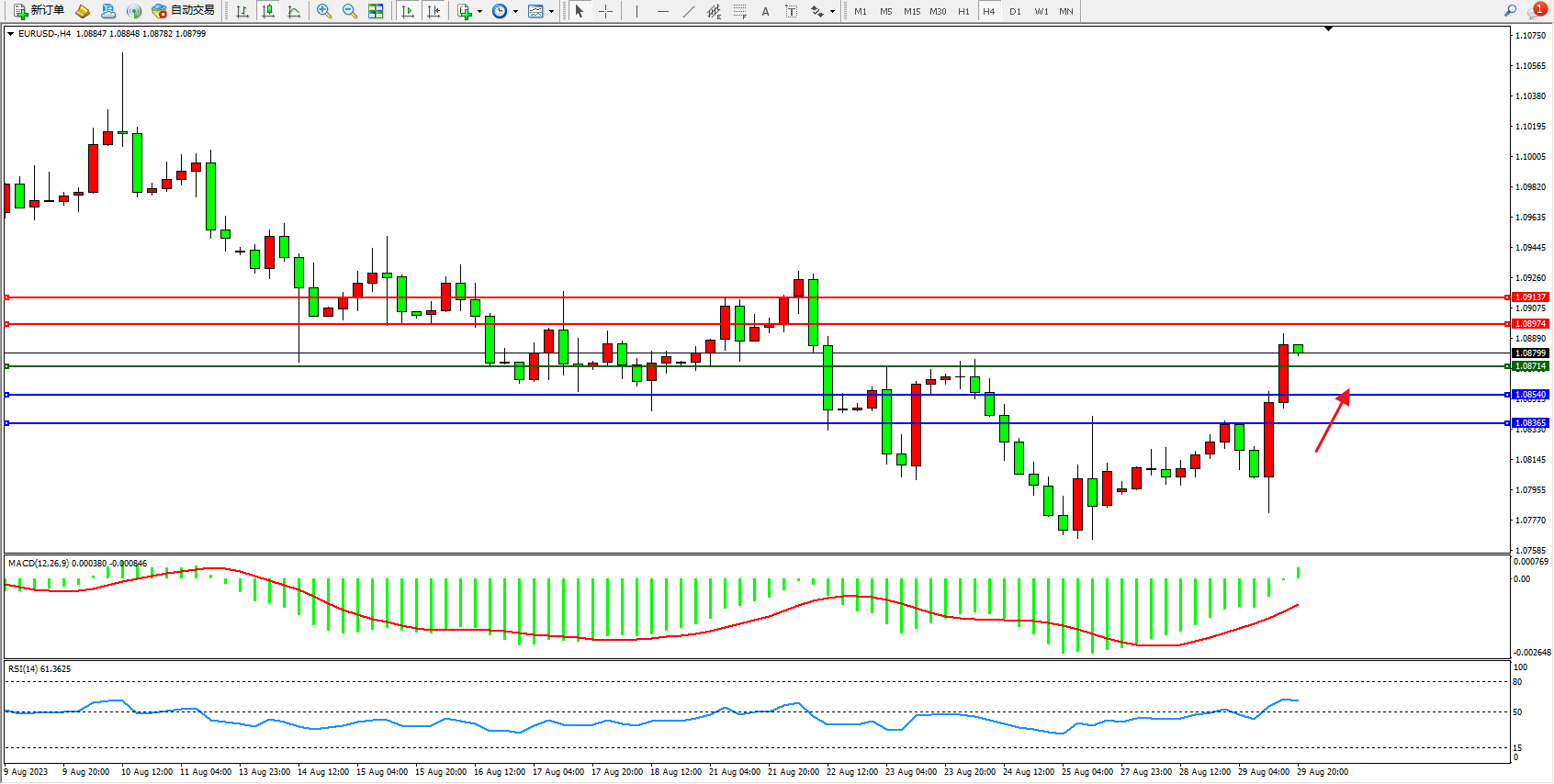 交易策略:1.08714上方看涨,目标1.08974 1.09137