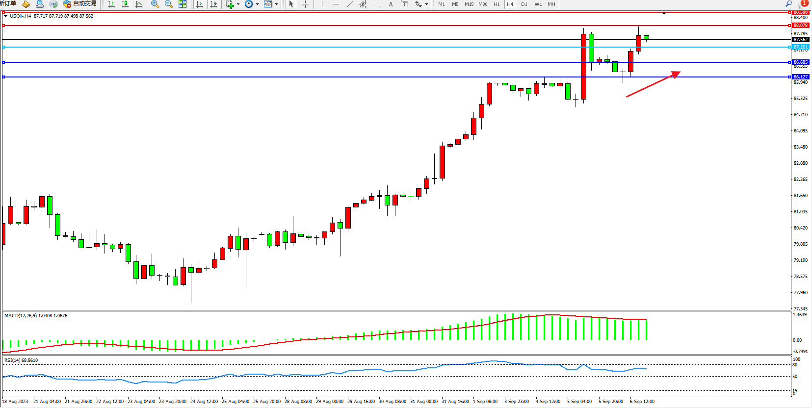 原油维持87.562附近震荡,OPEC减产迫在眉睫,给市场蒙上阴影,给价格带来上行压力。美国参与石油购买以补充战略石油储备又增加了一层上升动力。