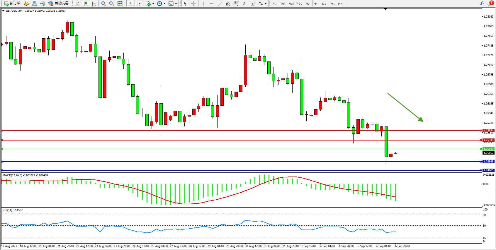 交易策略:1.25142下方看跌,目标1.24865 1.24669