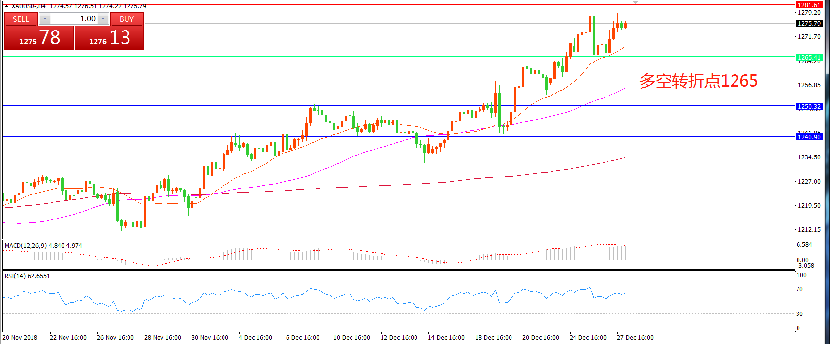 交易策略:在1265.00之上看涨,目标1280.00 1300.00