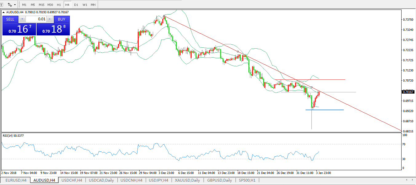 交易策略:在0.7015之下,看跌,目标价位为0.6920,然后为0.6833。