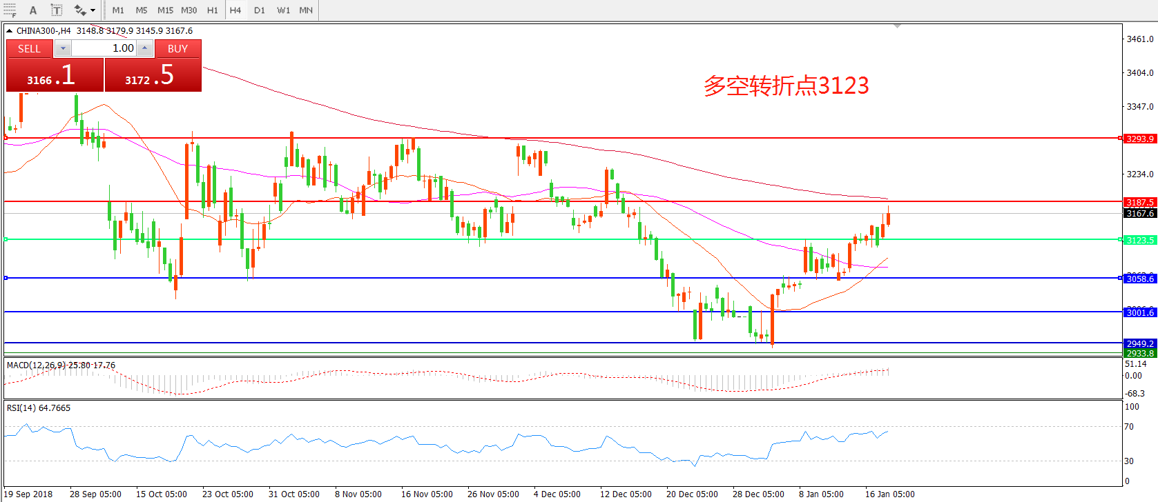 4小时图看,CHINA300中华指数站稳3058后陷入整理,日内如能站稳3123一线,反弹趋势即可确立, MACD绿柱减少,红柱增加,短期反弹成为可能。
