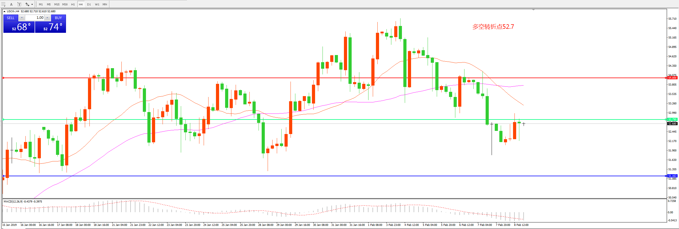 交易策略:在52.70之下看跌,目标51.00 49.00