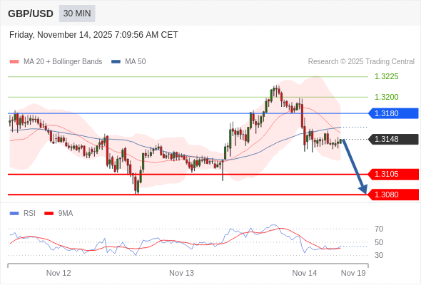 交易策略: 在 1.3180 之下,看跌,目标价位为 1.3105 ,然后为 1.3080 。