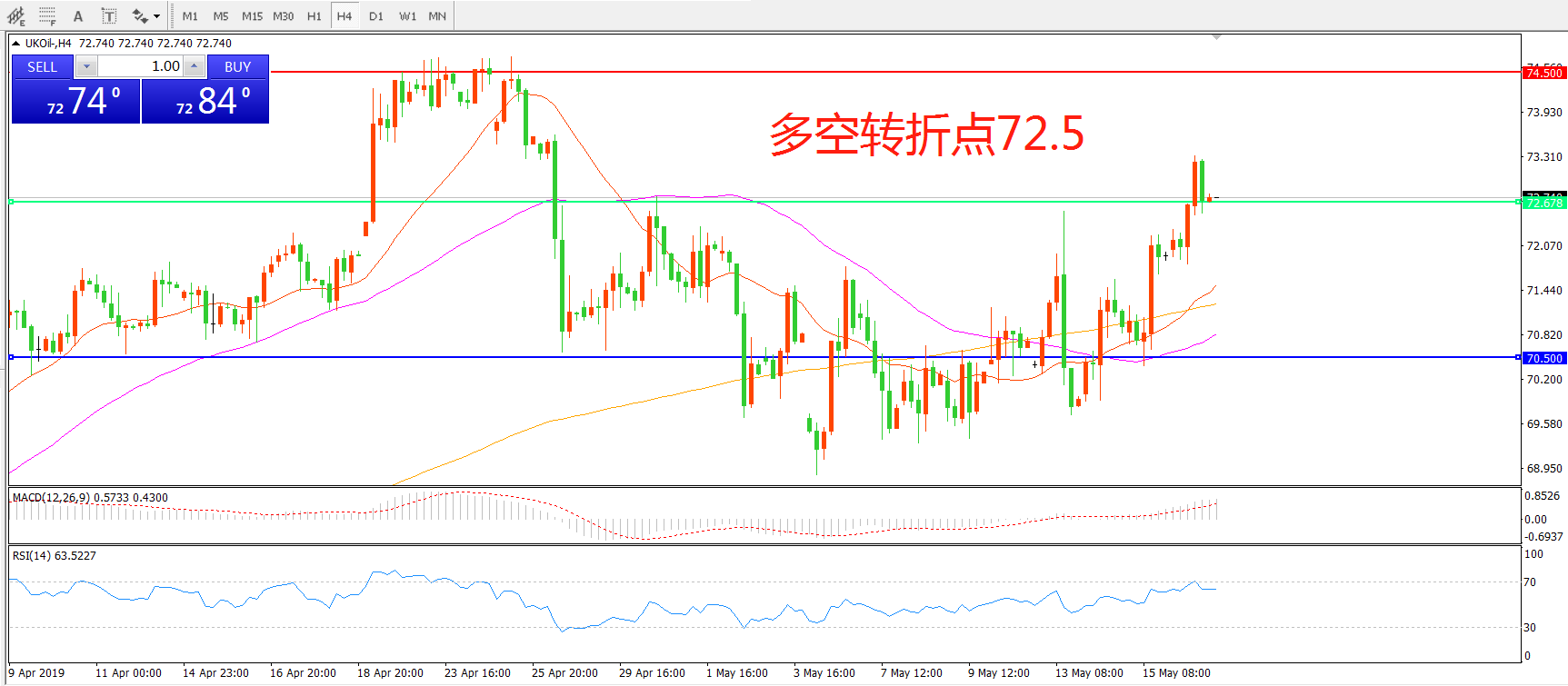 交易策略:在72.50 之上看涨,目标74.50    75.50