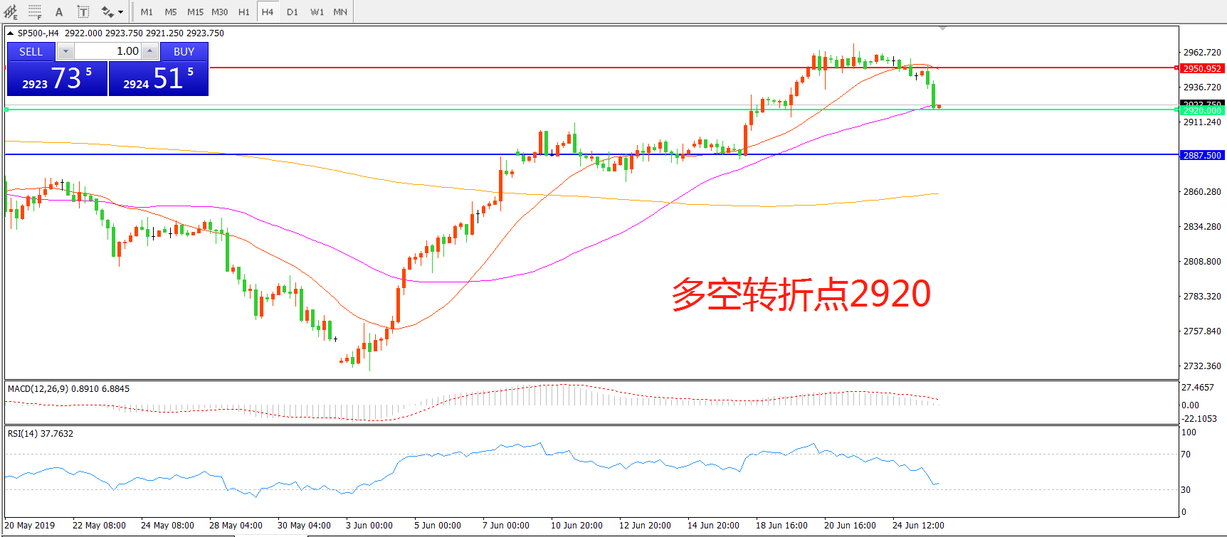标普500SP500 4小时图