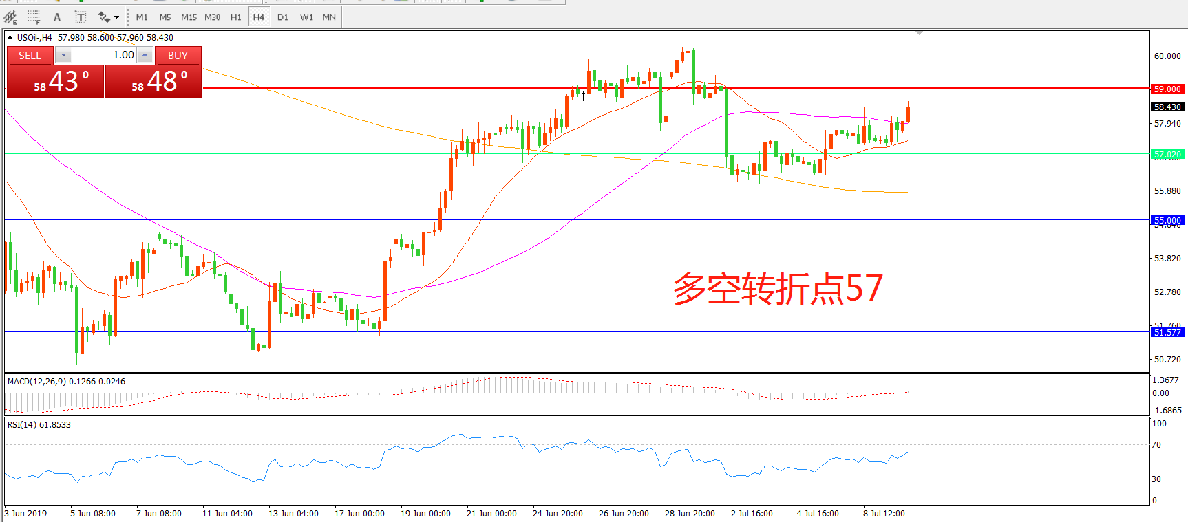 交易策略:在57.00 之上看涨,目标59.00 61.00