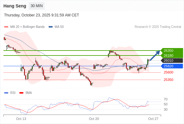 恒生指数 当日内: 目标为26350。