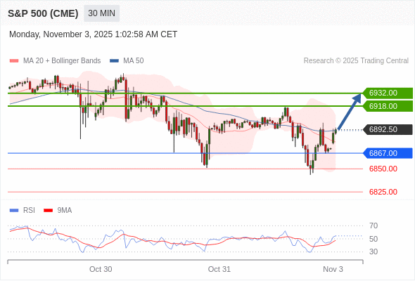 交易策略: 在 6867.00 之上,看涨,目标价位为 6918.00 ,然后为 6932.00 。