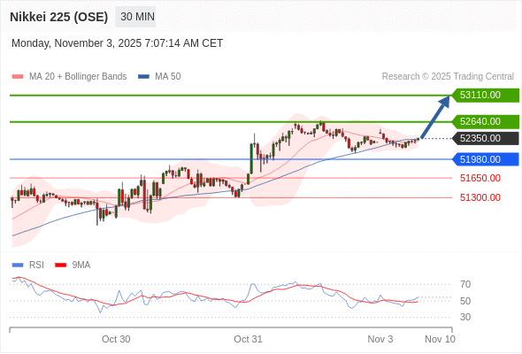 在 51980.00 之上,看涨,目标价位为 52640.00 ,然后为 53110.00 。