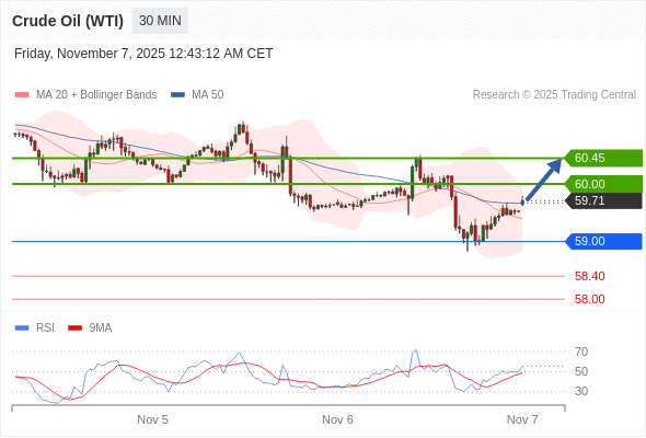 在 59.00 之上,看涨,目标价位为 60.00 ,然后为 60.45 。