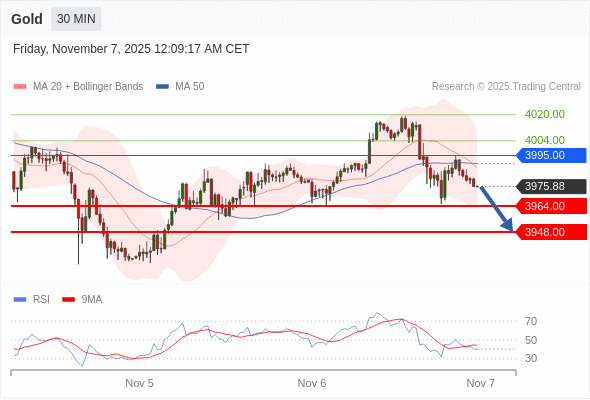 在 3995.00 之下,看跌,目标价位为 3964.00 ,然后为 3948.00 。