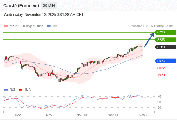 在 8076 之上,看涨,目标价位为 8235 ,然后为 8290 。