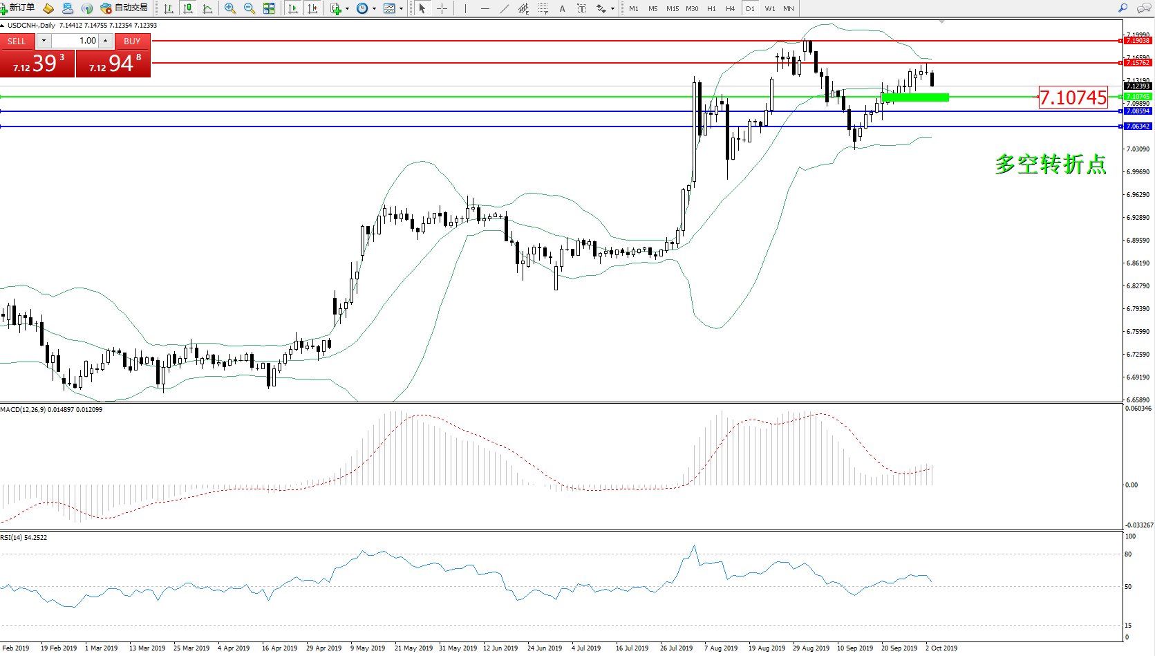 交易策略:7.10745上方看涨,目标7.157627.19038