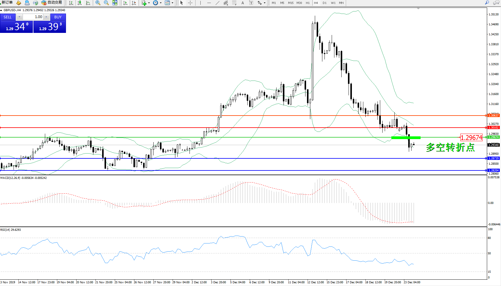 交易策略:1.29674下方看跌,目标1.28739、1.28204