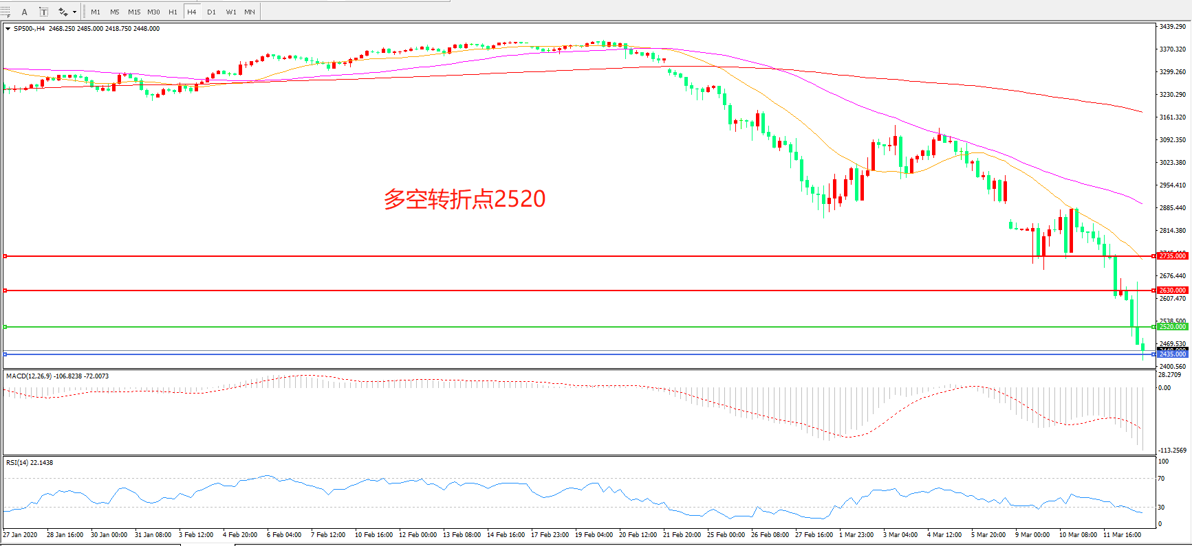 多空转折点:2520.00