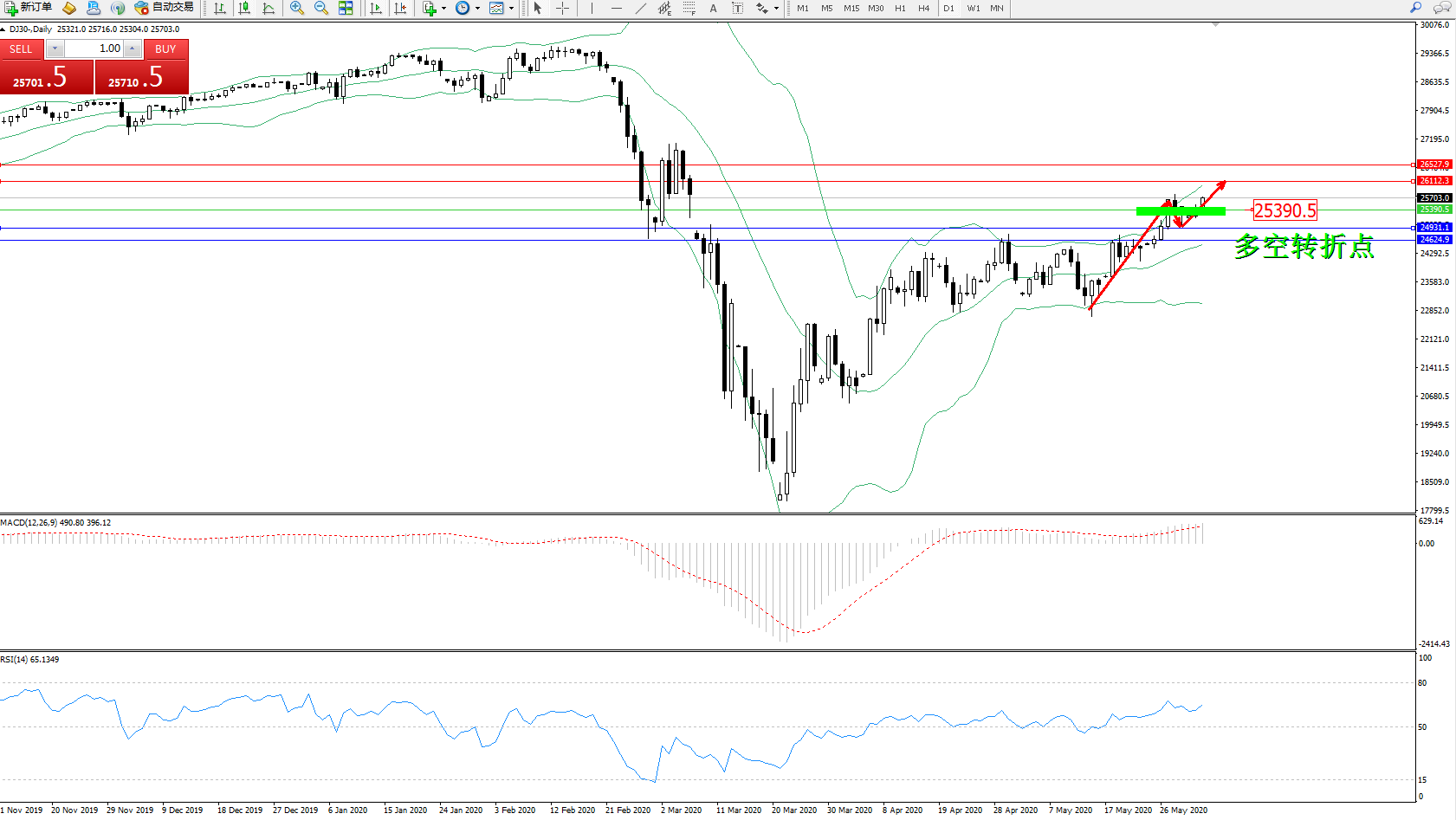 道琼斯指数62日(周二)收盘上涨267.60点,涨幅1.05%,报25742.65点。市场继续关注美国重启经济、各地的抗议活动及国际地缘政治关系。美国国会预算办公室预计美国经济可能需要十年才能恢复。风险市场的好日子仍在继续,尽管涨势强劲,但随着股市本轮涨势范围扩展到美国以外的地区,这种势头很可能会持续下去。预计美联储会采取更为持续的QE;美联储会确定下每个月800亿到1200亿美元的美国国债、250亿到350亿美元的抵押支持债券;此外,美联储前瞻指引也可能出现变化。美联储等待通胀达到2%的目标再加息看起来和美联储官员们的表态是一致的,即在这个周期的扩张阶段通胀目标看向2%2.5%