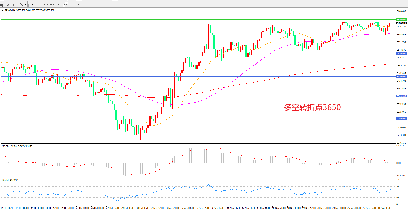 多空转折点:3650.00
