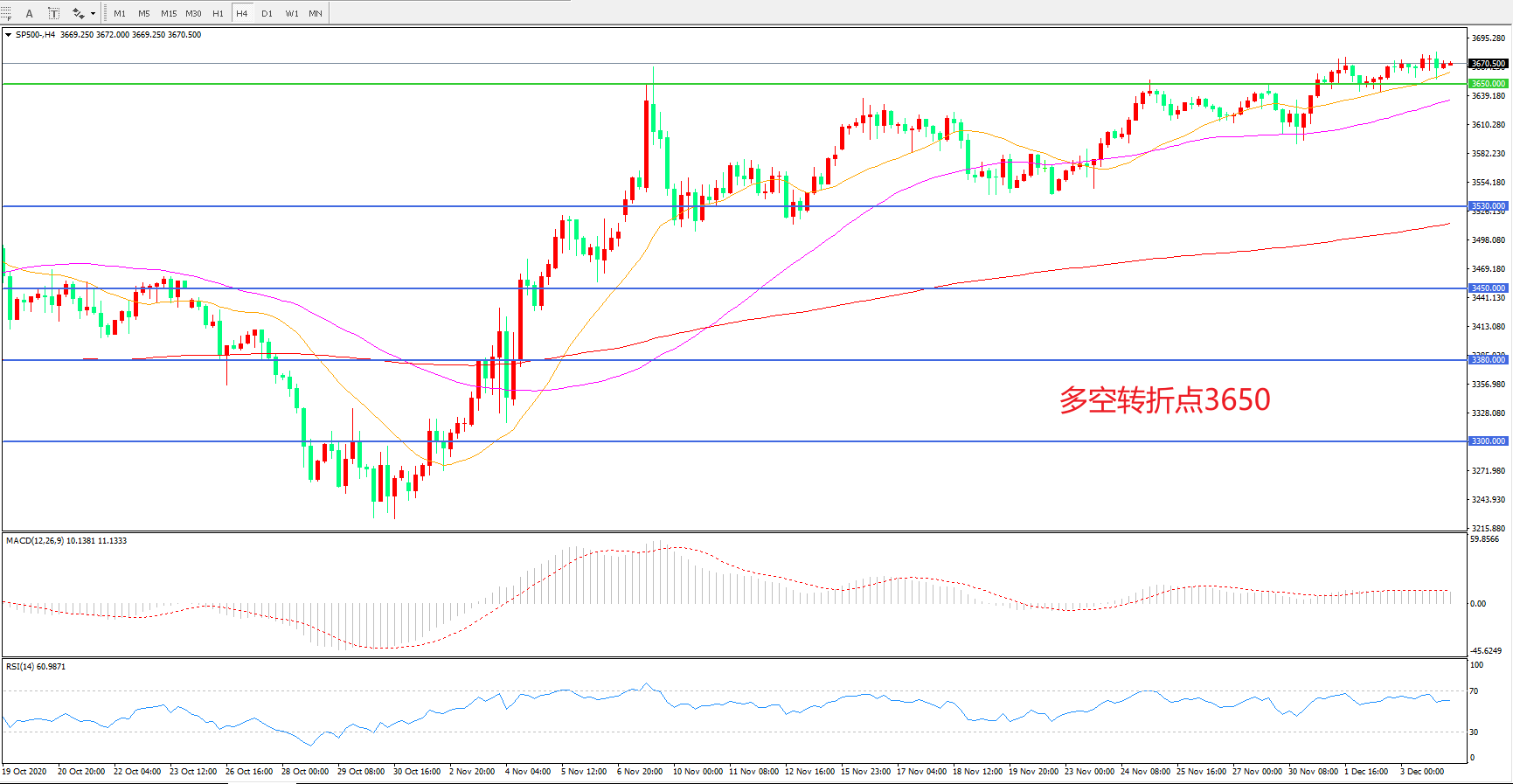 多空转折点:3650.00