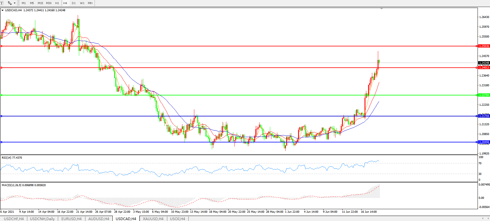 美元兑加元涨0.87%至1.2466; 根据加拿大皇家银行Alvin Tan称,如果美元收盘超过位于1.2362的一年下行通道上轨,将确立长期看涨趋势逆转,下一目标位将指向1.2406,然后是1.2502,支撑位在1.2296和1.2263附近。
