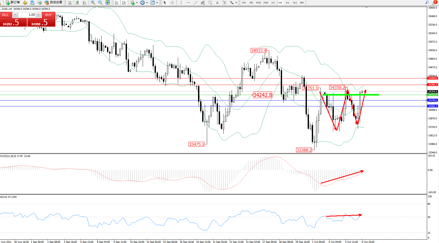 技术点评:长时间维持在布林带指标通道内维持宽幅震荡,多次呈V型反转拉升走势中,来回多次触及布林带指标上下轨区间节点,MACD指标低位多头动力维持震荡上移至0轴线附近徘徊,RSI指标处于50均衡线上方维持震荡中;