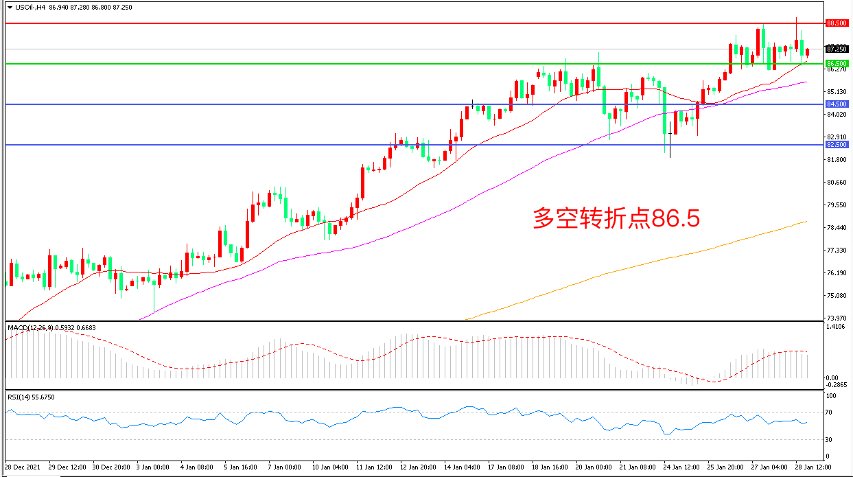 交易策略:在86.50之上看涨,目标86.00 90.00