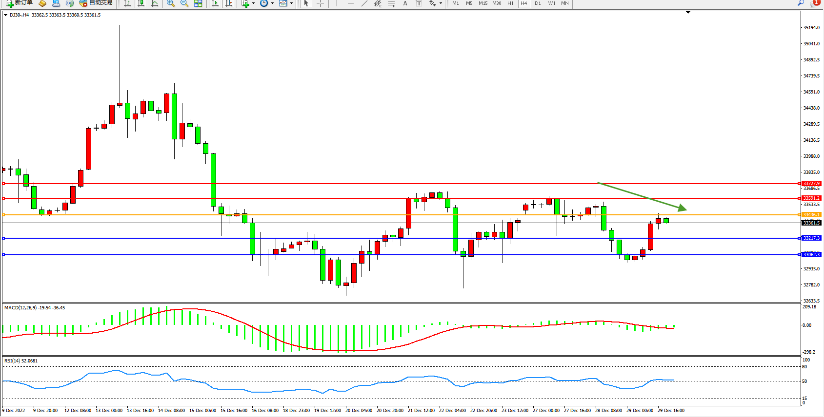 道琼斯指数12月29日(周四)收盘上涨345.16点,涨幅1.05%,报33220.87点;美国至12月24日当周初请失业金人数录得22.5万人,为12月3日当周以来新高。美国初请失业金人数有所上升,但仍接近历史低点,突显出尽管美联储采取了积极措施为需求降温,但就业市场仍保持着持久的韧性。