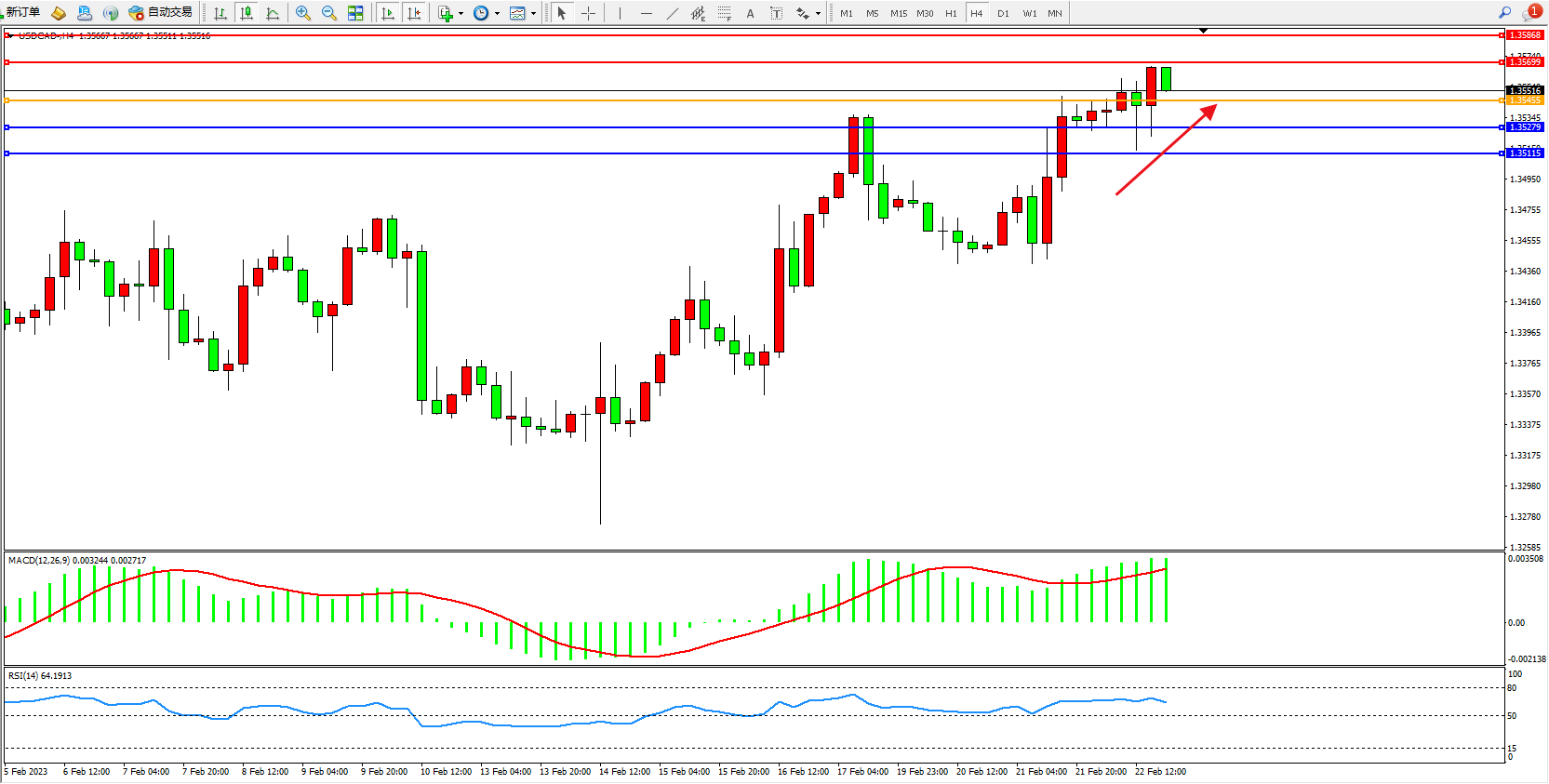 4小时图看:高位多头动力持续上行,短期看涨情绪依旧,MACD指标处于多头区域高位徘徊,RSI指标处于多头区域维持整理;