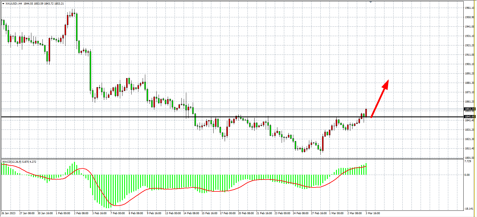交易策略:在1845.00 之上看涨,目标1850.00、1860.00