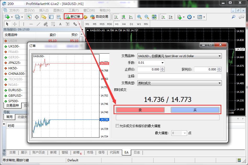 1.根据资金情况选择下单手数(最小可交易0.01手,最大可交易30手)